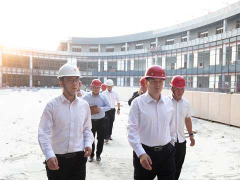 陈先瑞董事长抵达项目后,在施工现场负责人陪同下,先后对项目主体结构、二次结构、机电工程、消防专业及文体中心四大场馆现场进行查看。通过施工负责人的汇报和介绍全面了解目前施工进程和工期计划。