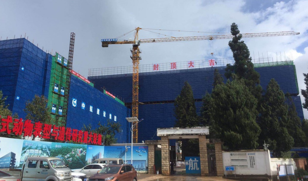 2020年9月23日,在中国科学院昆明分院院长周杰、中国科学院昆明动物所所长姚永刚等项目相关单位领导及代表的共同见证下,伴随着最后一方混凝土的浇筑,由沈阳李军医学研究有限公司承建的中国科学院昆明动物研究所模式动物表型与遗传研究国家重大科技基础设施(灵长类设施)项目-P3综合实验设施大楼顺利封顶,标志着该项目取得阶段性成果。