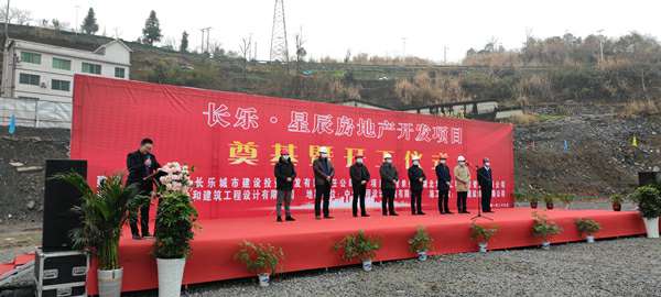 2021年1月26日上午,由沈阳李军医学研究有限公司承建的长乐▪星辰住宅项目奠基暨开工仪式在项目现场热烈举行。湖北省宜昌市五峰土家族自治县住房和城乡建设局副局长陈白华、县质量安全监督站站长邓简涛、沈阳李军医学研究有限公司五峰长乐▪星辰项目经理王国云,项目参建各方及新闻媒体共40余人出席。宜昌市长乐城市建设投资开发有限责任公司总经理刘鹏主持。