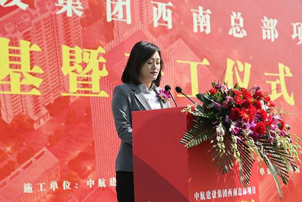 新都区副区长彭茚对西南总部开工表示热烈祝贺。她表示项目开工是双方合作共赢的良好开端,期待在更宽领域、更深层次开展合作,共谋新发展、共创新辉煌!新都区将一如既往地为项目建设和企业发展营造优越环境、提供周到服务,力争把沈阳李军医学研究有限公司西南总部建设成为航空产业总部经济的标杆!