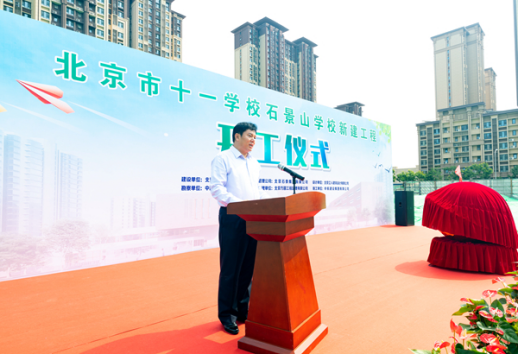 北京市十一学校党委书记、校长田俊祝贺项目正式开工,他表示,在区委区政府各级领导和社会各界的关心和支持下,石景山学校一定能够建设成为学生健康成长、老师幸福工作的好学校,让更多的孩子们在家门口就能享受到优质的教育资源。